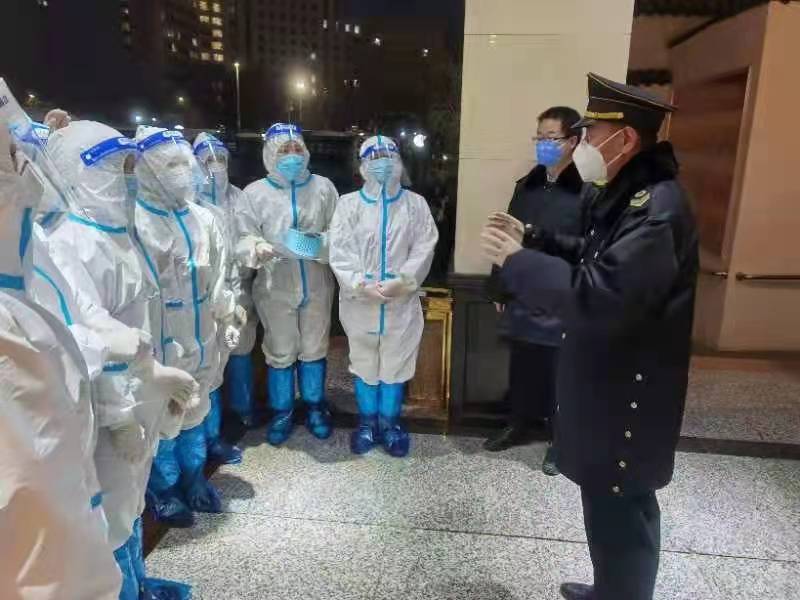 守土有責(zé),守土盡責(zé)。作為飯店防疫的第一道關(guān)口,安全部全員響應(yīng),主動作為,黨員干部帶頭以上率下,按照思想凝聚、力量匯集、集中調(diào)度、統(tǒng)一指揮的工作總要求,用“疫”不容辭的職責(zé)精神,履行崗位職責(zé),有效發(fā)揮了安全保衛(wèi)的作用力量。安全部嚴(yán)把第一道防線,嚴(yán)守每一個出入口,每天24小時輪流值守。嚴(yán)格按照疫情防控要求,對外來人員認(rèn)真測量體溫、查驗健康碼,并進行實名登記,對外來物品進行檢查與消毒,嚴(yán)防死守,杜絕一切人員風(fēng)險及物品隱患進入飯店。設(shè)置專區(qū)為醫(yī)療隊車輛停放及物資擺放提供便利,并協(xié)助引導(dǎo)人員與車輛通行。