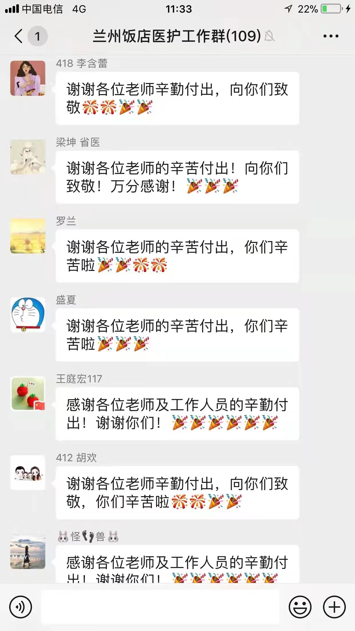 抗擊新冠肺炎疫情,事關(guān)大局,關(guān)乎每個人的生命安全與身體健康。疫情發(fā)生后,飯店領(lǐng)導(dǎo)和所有黨員干部主動擔(dān)當(dāng)、敢于作為,堅持工作在一線,體現(xiàn)了飯店的社會責(zé)任,為疫情防控積極奉獻力量。隔離結(jié)束后,醫(yī)護人員們通過感謝信、微信和電話等方式,由衷感謝蘭州飯店服務(wù)人員的暖心陪伴和貼心服務(wù)。