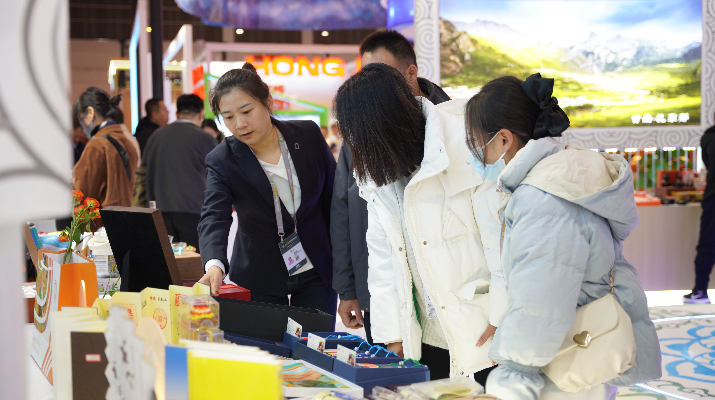 此次甘肅省展廳以“交響絲路·如意甘肅”為主題,展區(qū)內(nèi)設(shè)10個接待臺、2個非遺項(xiàng)目展示臺以及1個專業(yè)洽談區(qū),整體設(shè)計融入敦煌飛天、莫高窟、祥云等甘肅元素,將自然景觀、人文景觀與悠久歷史相結(jié)合,為嘉賓們打開了深入了解甘肅文旅資源的窗口,成為本次交易會的一大亮點(diǎn)。