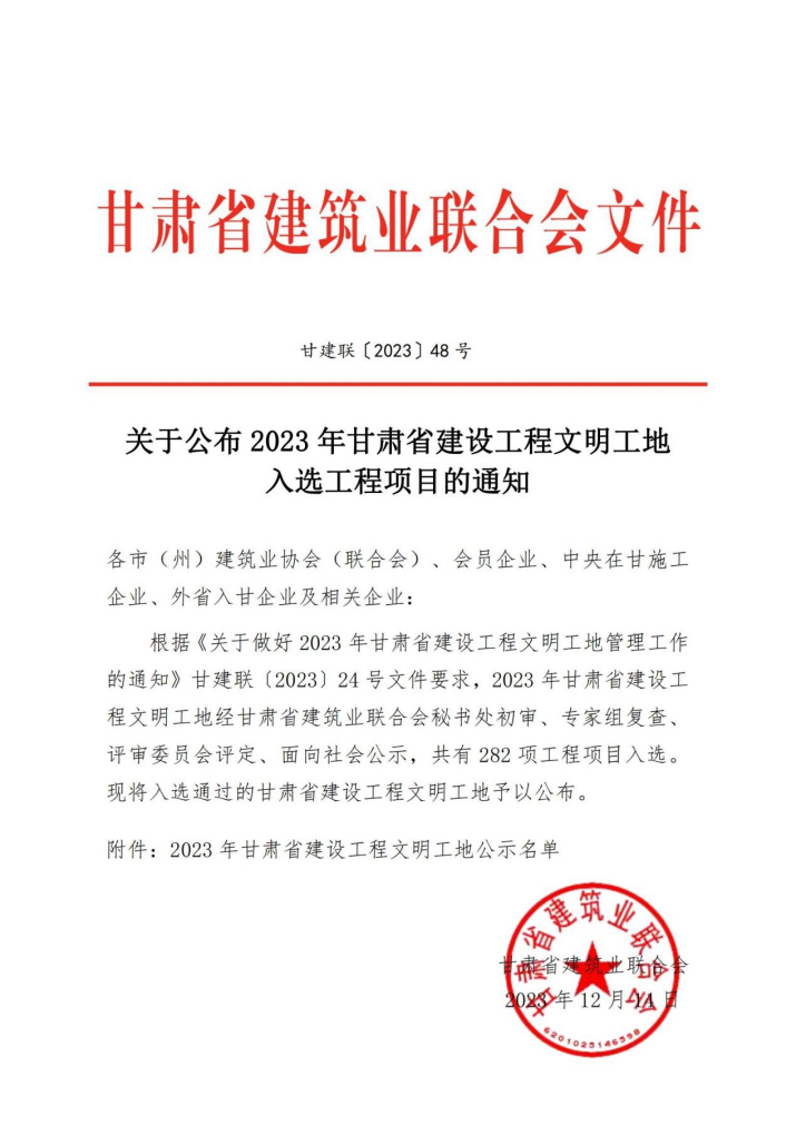 喜報丨蘭州市政建設(shè)集團(tuán)6項工程獲評省級文明工地、5名員工獲評省誠信建造師