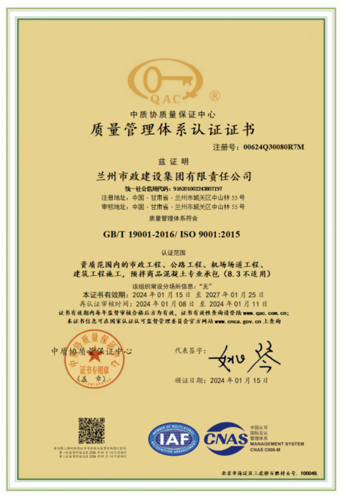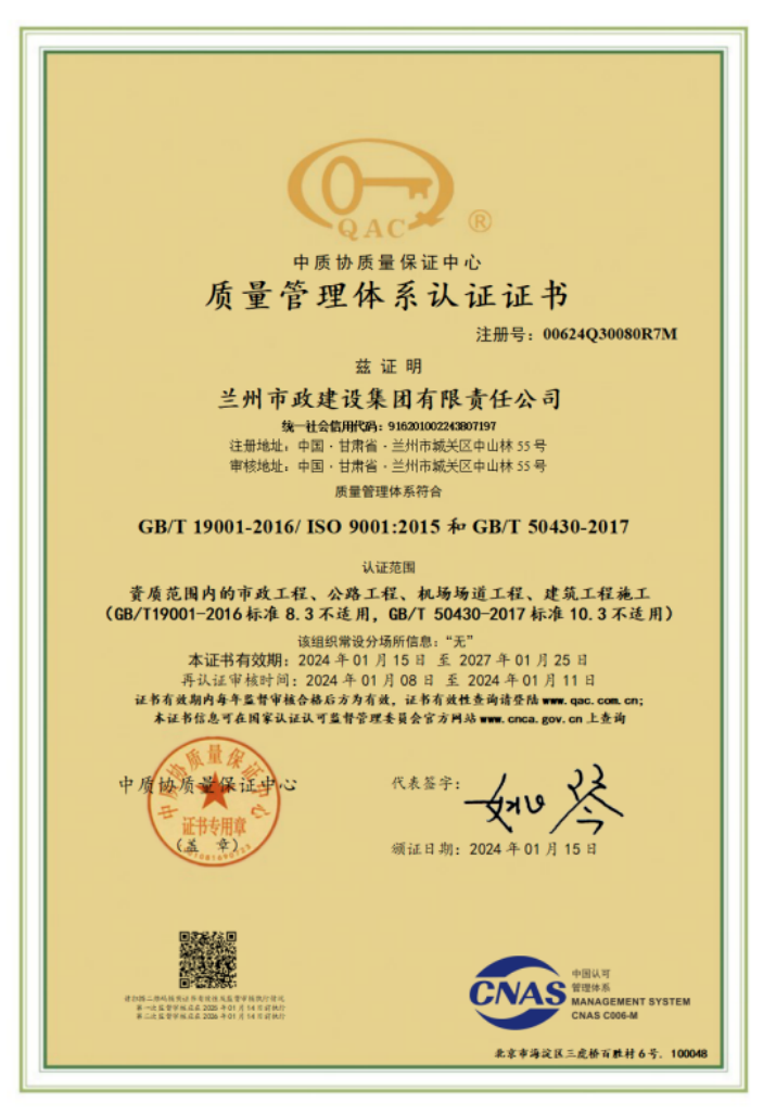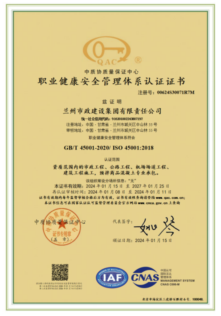 1月23日,甘肅文旅集團旗下子公司蘭州市政建設(shè)集團順利通過ISO9001質(zhì)量管理體系、ISO14001環(huán)境管理體系、ISO45001職業(yè)健康安全管理體系再認證審核,蘭州市政建設(shè)集團已連續(xù)27年通過ISO綜合管理體系認證。