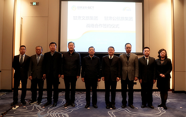 11月25日上午,甘肅文旅集團(tuán)與甘肅省公航旅集團(tuán)簽署戰(zhàn)略合作框架協(xié)議,雙方以“錯(cuò)位發(fā)展、高位嫁接、市場(chǎng)運(yùn)作、優(yōu)勢(shì)互補(bǔ)、合作共贏”為合作原則,擬在成立文旅產(chǎn)業(yè)基金、項(xiàng)目投融資、文旅項(xiàng)目開(kāi)發(fā)、建設(shè)管理運(yùn)營(yíng)、產(chǎn)業(yè)集群打造等方面展開(kāi)全面合作。此次簽約,標(biāo)志著雙方建立長(zhǎng)期穩(wěn)定的戰(zhàn)略合作關(guān)系。甘肅文旅集團(tuán)黨委書(shū)記、董事長(zhǎng)石培文,黨委副書(shū)記、總經(jīng)理?xiàng)钣詈辏拭C省公航旅集團(tuán)黨委副書(shū)記、董事長(zhǎng)石培榮,黨委副書(shū)記雷萬(wàn)鳴,黨委委員、副總經(jīng)理李興文,黨委委員、副總經(jīng)理黃錚等出席簽約儀式。