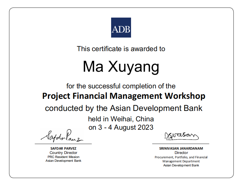 此次培訓(xùn)重點(diǎn)對(duì)亞行采購(gòu)政策、合同管理與合同計(jì)劃、亞行財(cái)務(wù)盡職分析要求、項(xiàng)目會(huì)計(jì)核算、項(xiàng)目財(cái)務(wù)報(bào)表、項(xiàng)目審計(jì)等主題進(jìn)行授課。通過(guò)演講、案例研究、小組討論、結(jié)業(yè)測(cè)試及經(jīng)驗(yàn)豐富的執(zhí)行機(jī)構(gòu)分享經(jīng)驗(yàn)等方式使參訓(xùn)人員加深了解亞行貸款采購(gòu)、財(cái)務(wù)政策/規(guī)定并拓展實(shí)踐知識(shí)。甘肅文旅集團(tuán)國(guó)際金融組織貸款項(xiàng)目管理辦公室一名同志代表亞行貸款甘肅環(huán)境可持續(xù)鄉(xiāng)村振興與發(fā)展項(xiàng)目作了大會(huì)交流發(fā)言,分享了項(xiàng)目管理工作中的經(jīng)驗(yàn)和關(guān)注點(diǎn)。培訓(xùn)授課結(jié)束,三名參訓(xùn)人員獲得了結(jié)業(yè)證書(shū)。